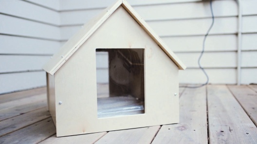 Bought this house for an outside cat. This house was easy to assemble and made with good thick wood. Very sturdy. Comes with a soft pad for kitty to rest on. The cat still has not gone inside it. :( Maybe there's a smell he doesn't like? Hope he eventually likes it.