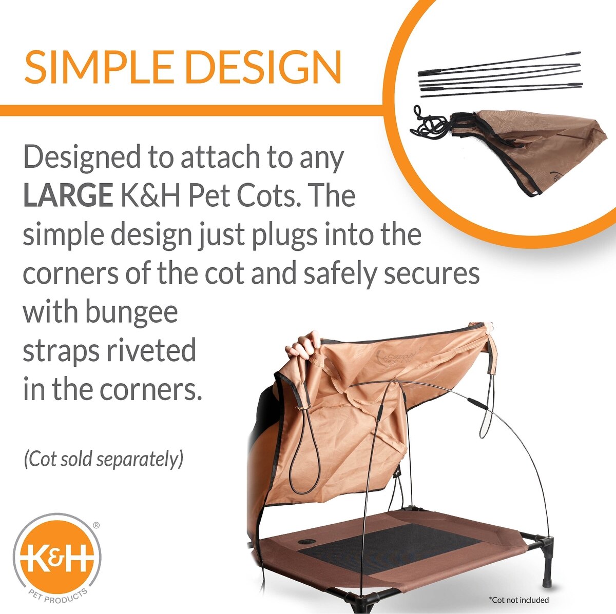 K&H Pet Products Canopy Add on for Elevated Dog Bed, Tan, Large