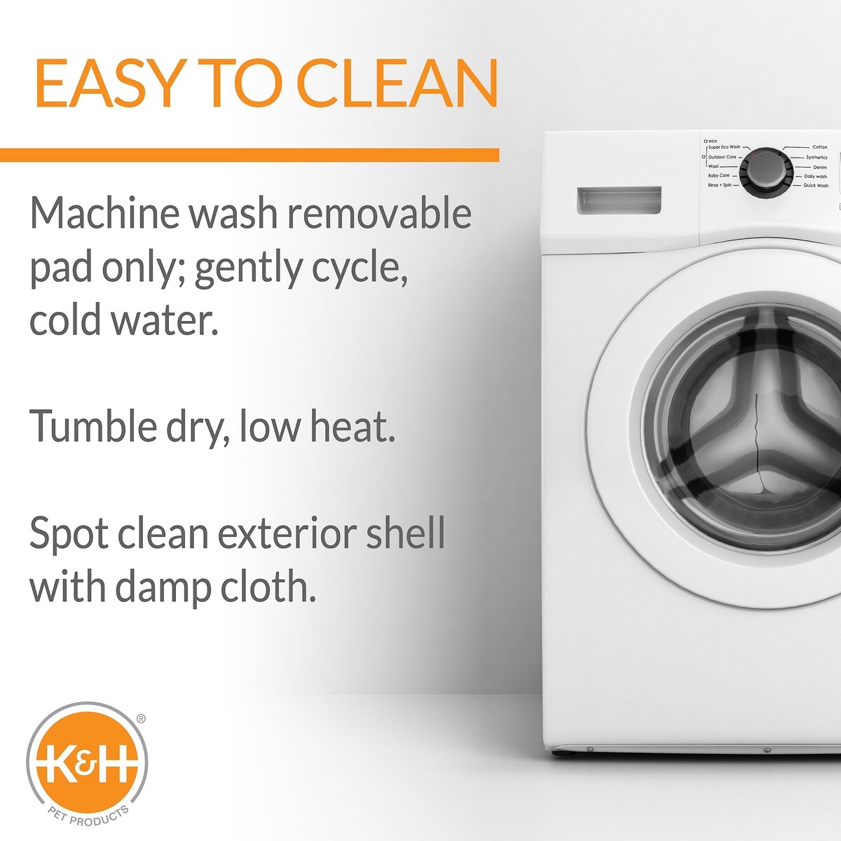 All K&H beds are either machine washable or made with a machine washable cover for cleanliness and convenience.