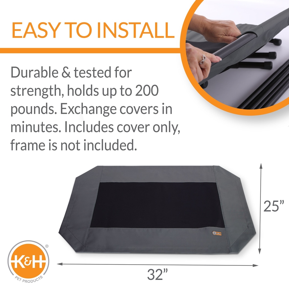 K&H Pet Products Original Pet Cot Replacement Dog Bed Cover, Charcoal/Black, Medium