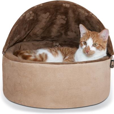 K&H Pet Products Self-Warming Hooded Cat Bed, Chocolate/Tan, Small
