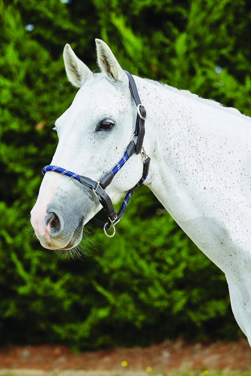 Kincade Leather Rope Horse Headcollar, Navy/Brown, Cob