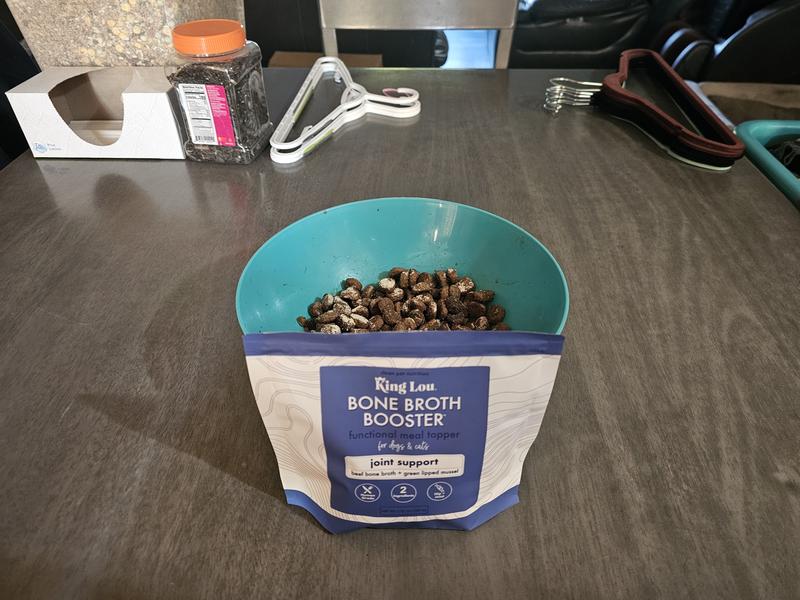 The King Lou Bone Broth was a hit. Ginger and Copper love the flavor and especially the aroma. I would recommend it. Easy and convenient to make. Thank you Chewy