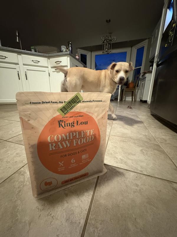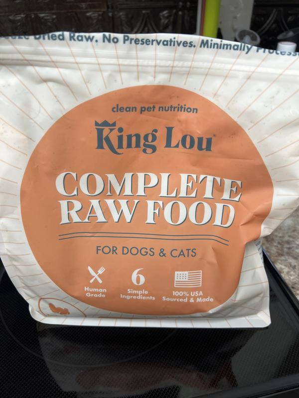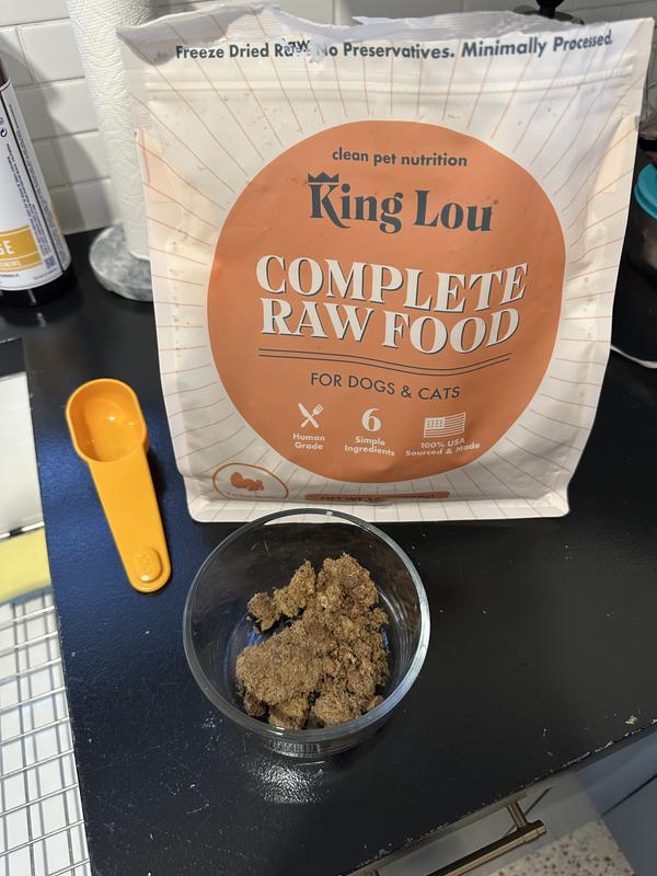 King Lou Complete Raw Food was at first a bit strange due to the look and having to rehydrate, but let me tell you the dogs went nuts over this as a part of their food blend. Looking to buy some more to keep giving as an option.