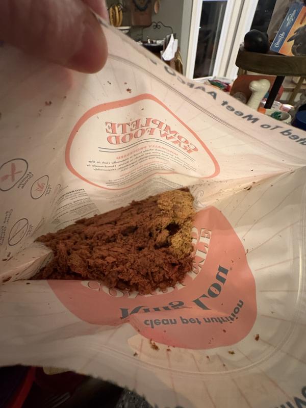 I opened the bag to this one a little surprised to see it looked like chewed up food. It didn’t smell bad though. We had the turkey recipe. My dog wouldn’t leave