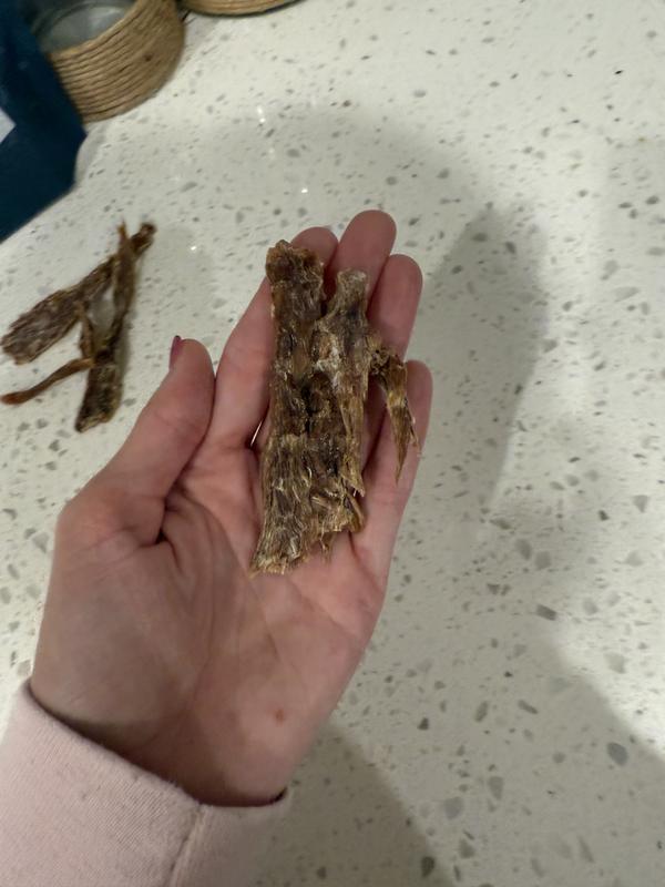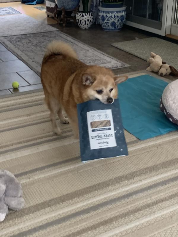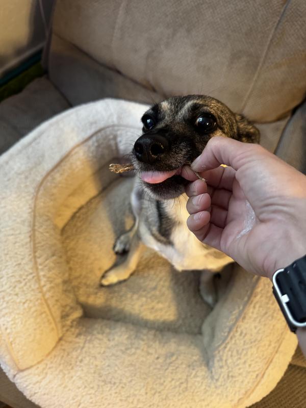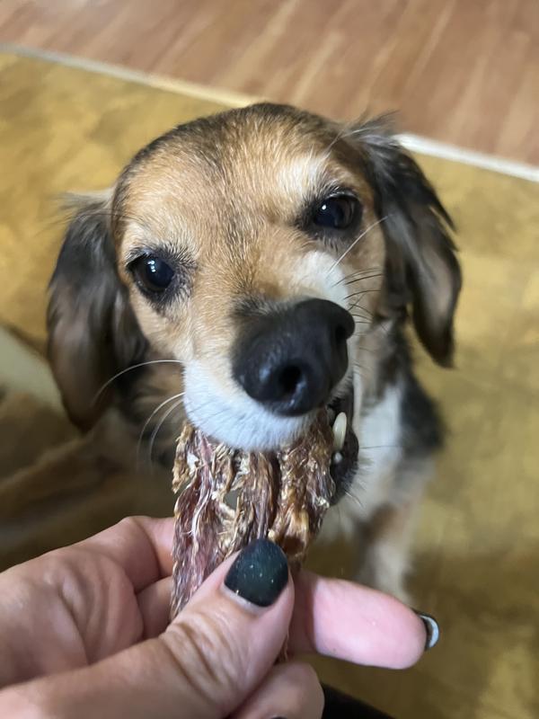 Logan is not a great treat guy. He frequently turns away from treats that are offered. He immediately took the piece of jerky. I was very pleased he liked it because the only ingredient is Duck breast tenderloin and not a lot of fillers and chemicals. Has lots of protein and a good amount of fat. That’s good for his coat. I am very happy with these treats.