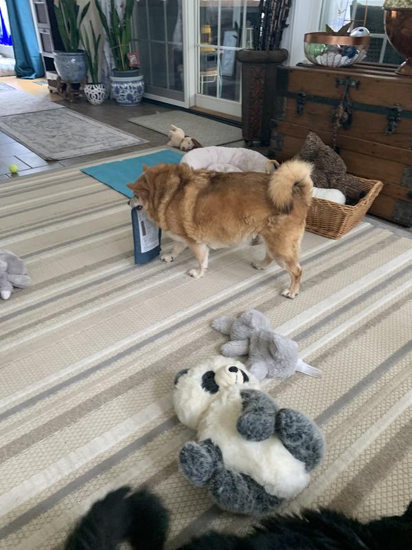 My dogs and cat have given this a quadruple A+. Willy wouldn’t even let the cat have any. As you can tell by the pictures, Willy walked away with the bag. He did