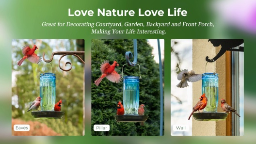 Kingsyard Glass Waterer Wild Bird Feeder, Green
