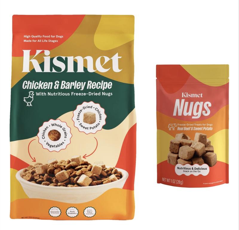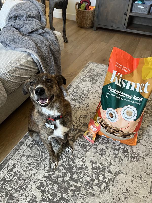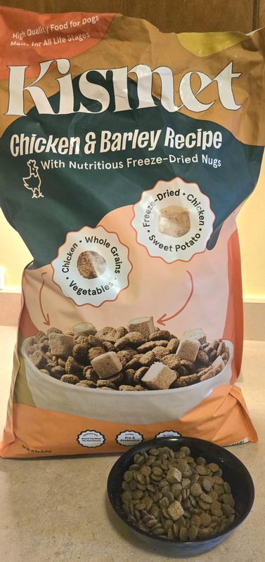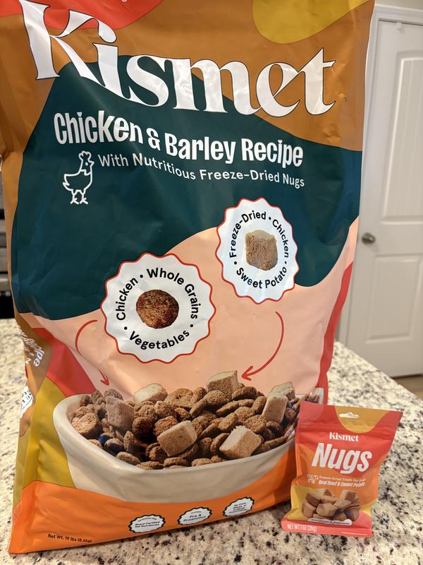 - Kismet Chicken & Barley Recipe with Freeze-Dried Nugs Dry Dog Food—Nutrient-packed superfoods plus prebiotics and probiotics support your furbaby’s health.