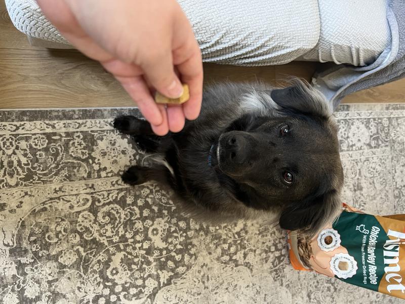 I gave my dog Kismet chicken with barely recipe and Kismet Nugs real beef and sweet potato treats. The dog food was a hit. My lab/shepherd mix seemed to like it abd tolerated it well. The Nugs treats were not a great fit and she threw up an hour after eating them. I'm not entirely sure the treats made her sick but for a dog her size the small little treats don't cut it. I highly recommend the food.