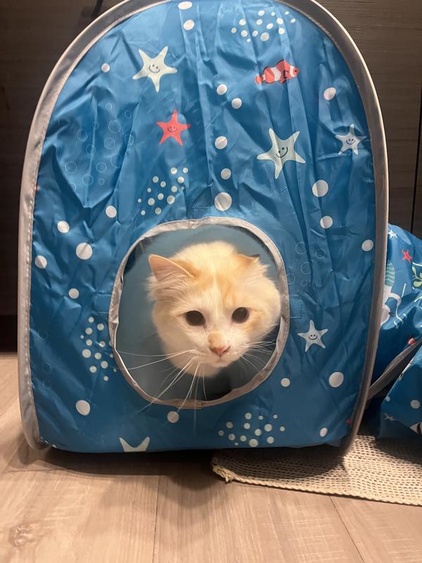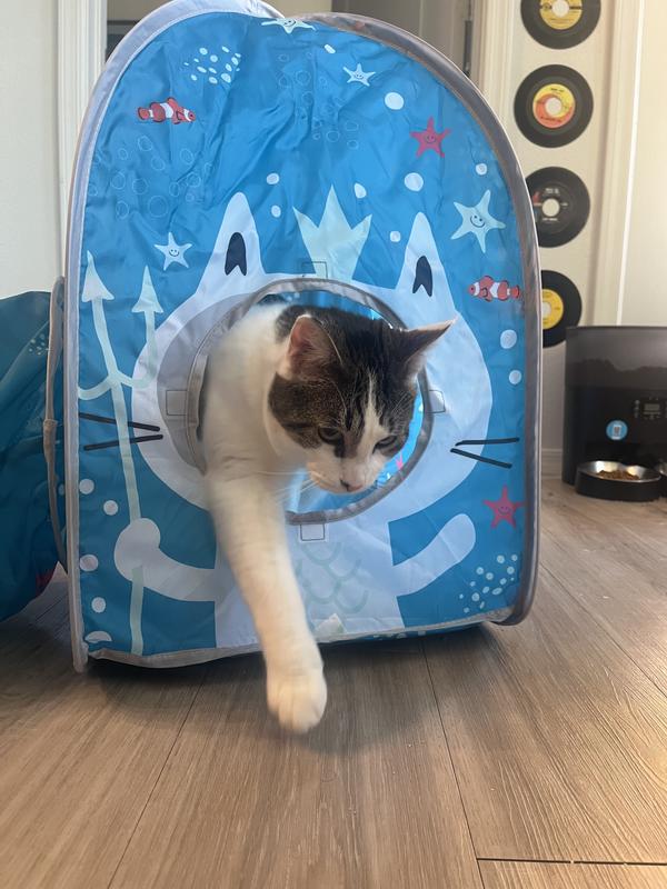 My cats love their ocean tunnel. My two boy cats chase each other through it and will sit in the house to hide from each other when they play! They like it more than normal tunnels because of the two houses on the end! It can be take apart to be 3 separate pieces too!