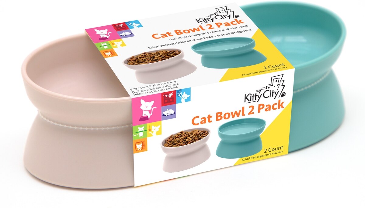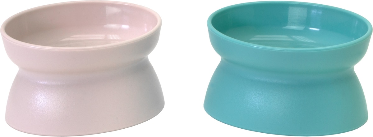 Kitty City Raised Cat Bowls, 2 count, Pink/Teal Blue, Small: 6.5-oz