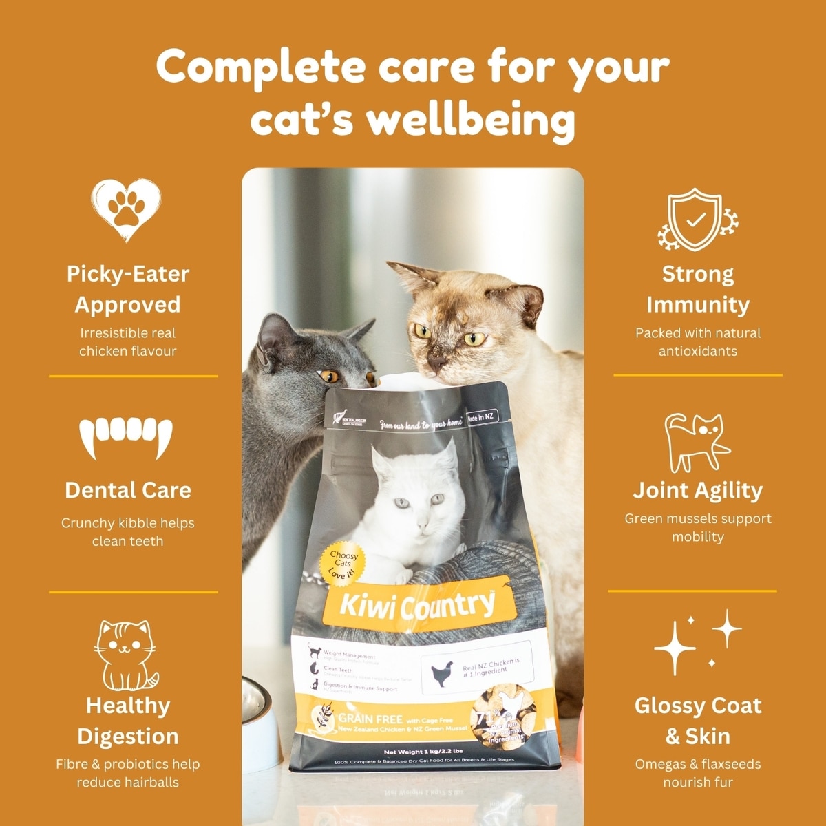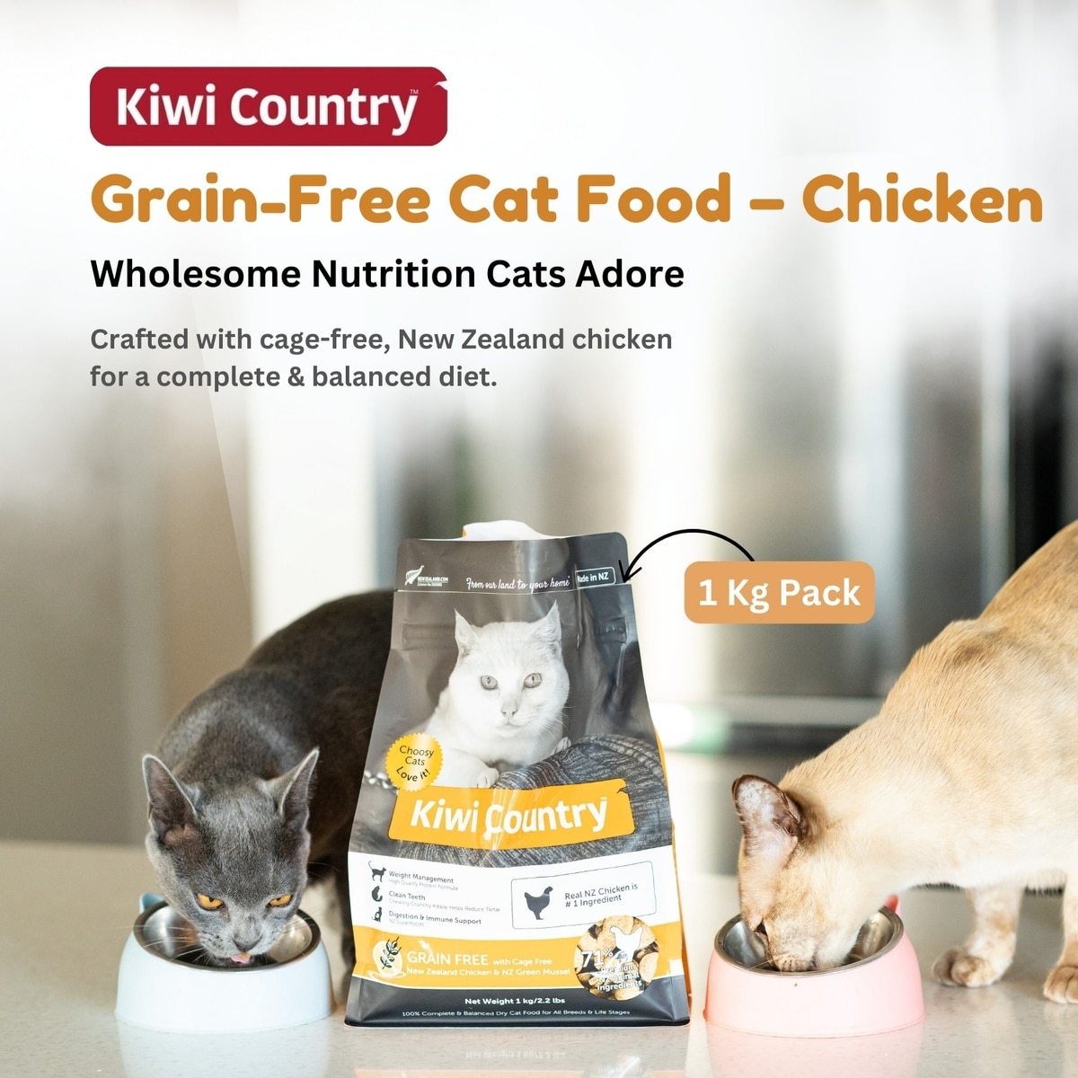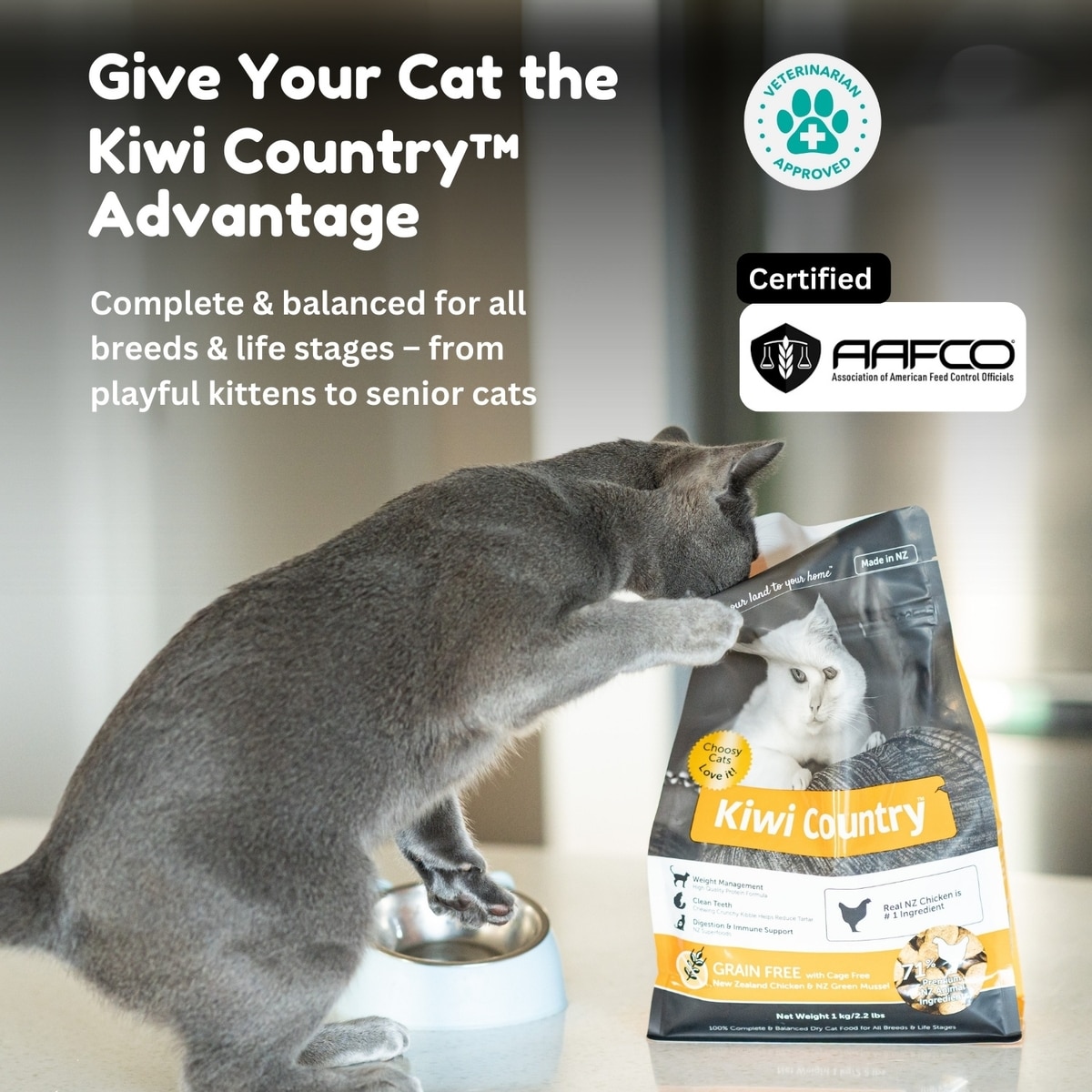 Kiwi Country Grain-Free Chicken & NZ Green Mussel Dry Cat Food, 2.2-lb bag
