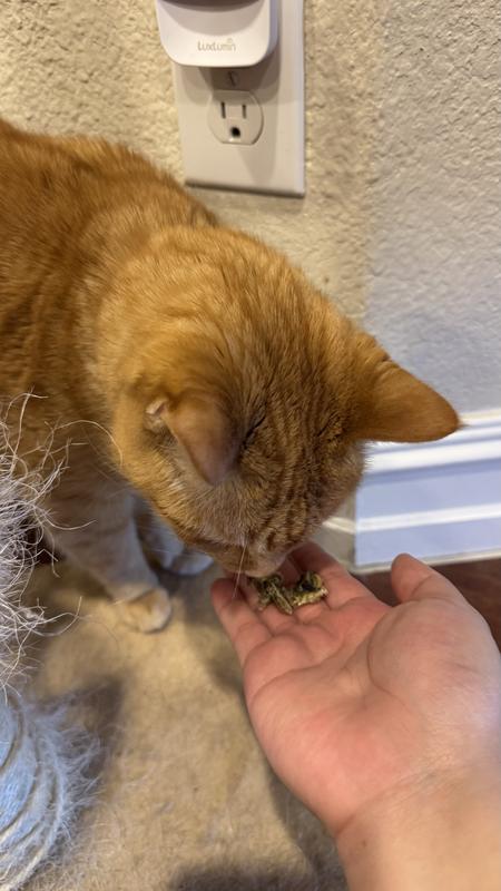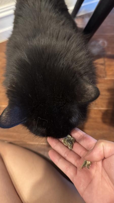 This treat is safe for a cat to eat, although the pieces may be too large for them.