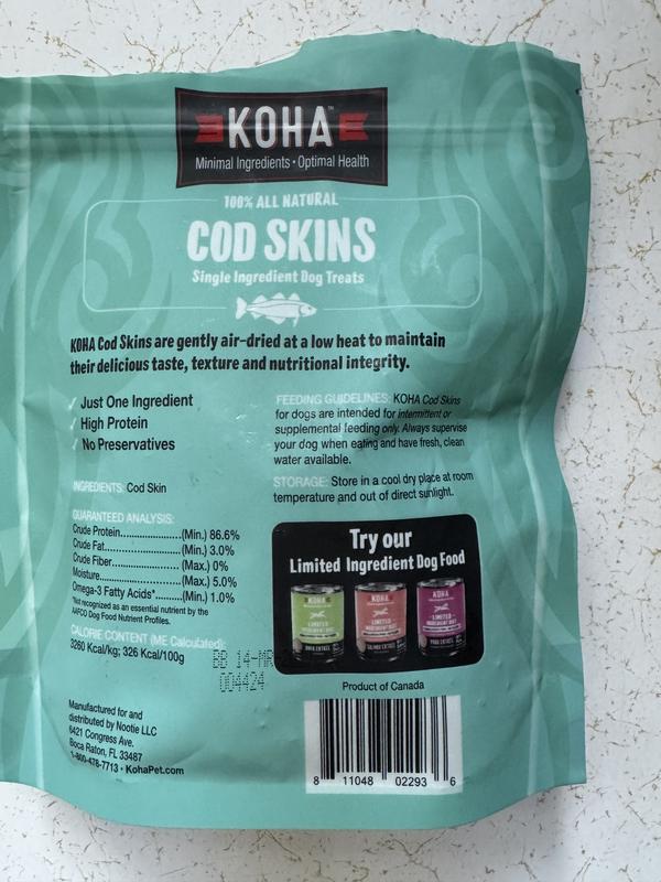 KOHA Air-Dried Single Ingredient Cod Skins Natural Chew Dog Treats, 2.5-oz bag