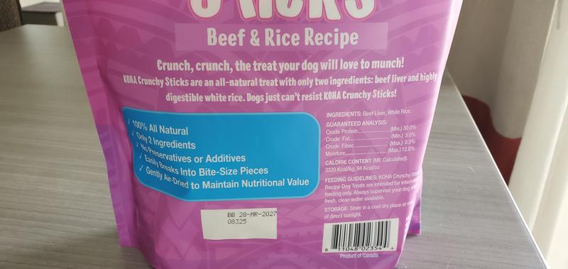 KOHA Crunchy Sticks Limited Ingredient Beef & Rice Dog Treats, 10.58-oz bag