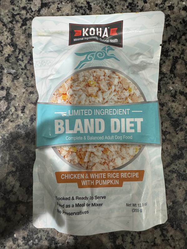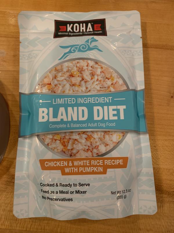 - DealKOHA Limited Ingredient Bland Diet Sensitive Stomach Chicken & Brown Rice with Pumpkin Dry Food Dog Food, 3.5-lb bag$22.99 Chewy Price$21.84 Autoship PricePromo, Spend $100, Get $30 eGift Card with code NEWYEAR +2 deals