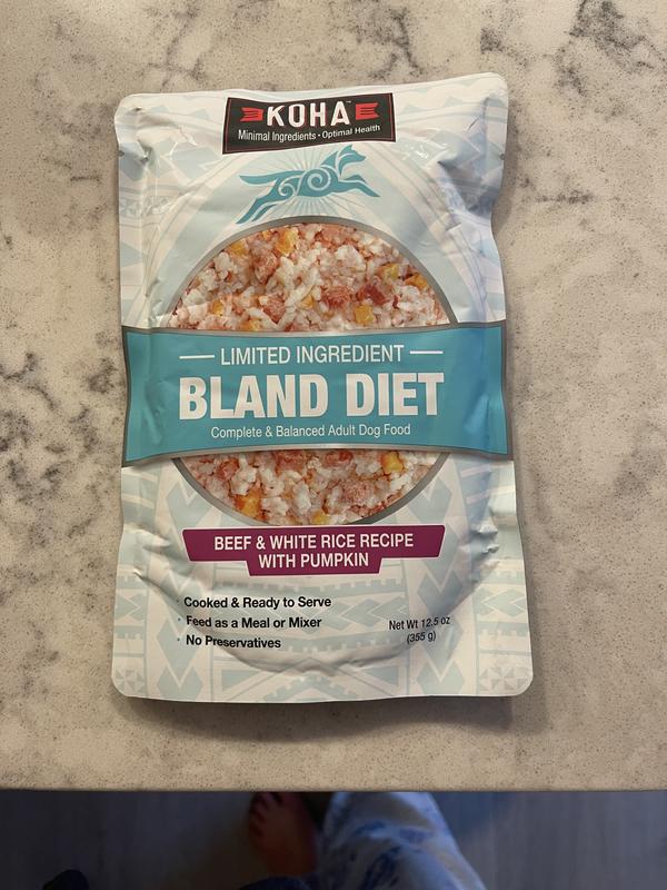 - KOHA Sensitive Stomach Limited Ingredient Bland Diet Salmon, Brown Rice & Pumpkin Dry Dog Food Food, 3.5-lb bag$24.99 Chewy Price$23.74 Autoship Price
