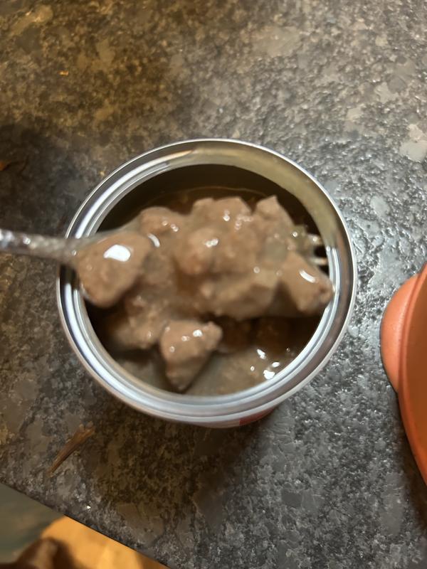 Our dogs love this canned food. We have 2 senior dogs that take medication, and it’s not easy to get them to take it. We mix a little bit of this food with their dry food and empty the capsules into it, and they love it! We have tried a bunch of canned dog foods but this one is great because it has a good amount of the gravy in it, which makes it easier even after refrigeration to mix in their meds with their food.