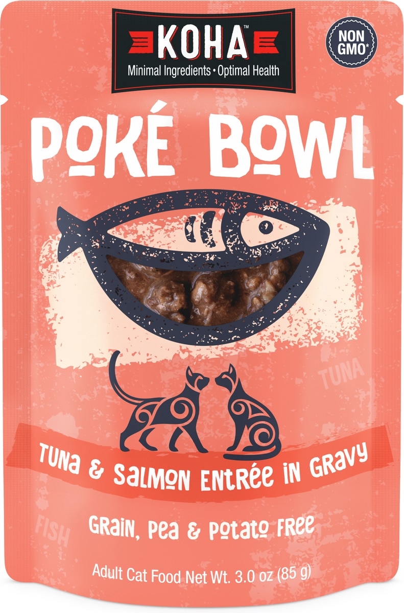 KOHA Poké Bowl Tuna & Salmon Entrée in Gravy Wet Cat Food, 3-oz pouch, case of 12