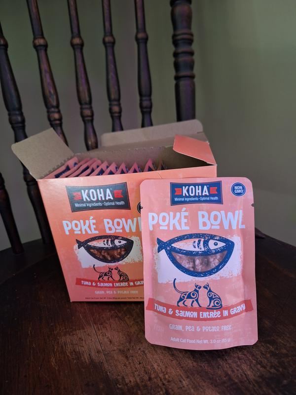 - DealKOHA Poké Bowl Tuna & Duck Entrée in Gravy Wet Cat Food, 3-oz pouch, case of 12$18.60 Chewy Price$17.67 Autoship PricePromo, Spend $100, Get $30 eGift Card with code NEWYEAR +1 deal