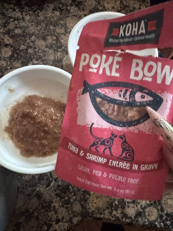 - DealKOHA Poké Bowl Tuna & Salmon Entrée in Gravy Wet Cat Food, 3-oz pouch, case of 12$18.60 Chewy Price$17.67 Autoship PricePromo, Spend $100, Get $30 eGift Card with code NEWYEAR +1 deal
