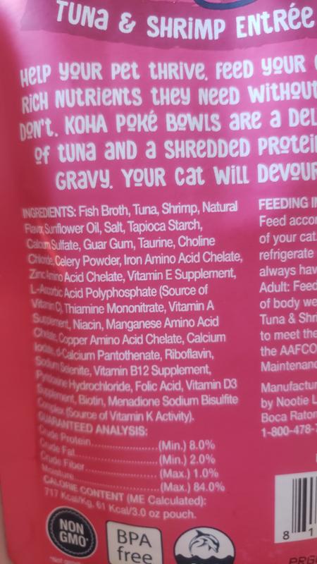 Quality You Can Trust Delicious, high in protein, and sustainably sourced, these recipes use only wild caught, dolphin-safe, non-GMO tuna. Like all Koha recipes, these Poké Bowl entrées are also free from filler ingredients like peas and potatoes that can cause digestive upset.