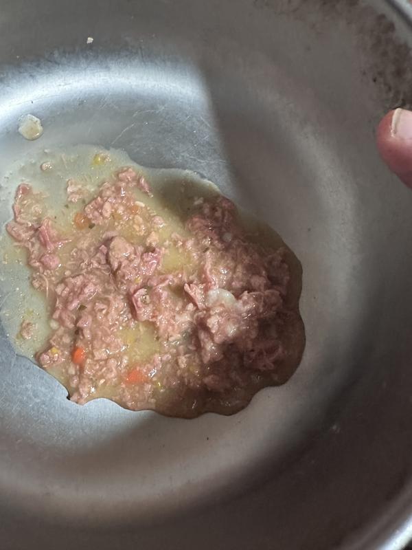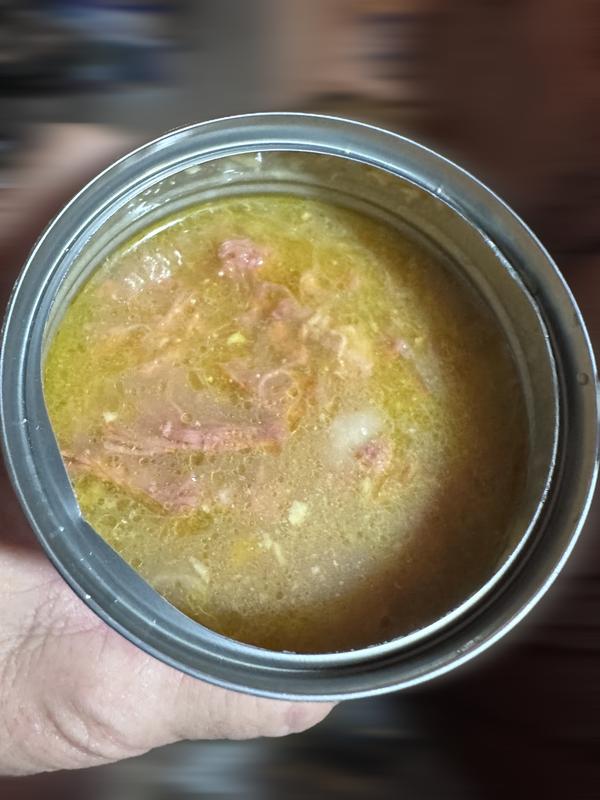 Talk about quality! This dog food looks like people food. The food is made of real shredded chicken and beef, tender veggies, in a juicy broth. It seriously looks