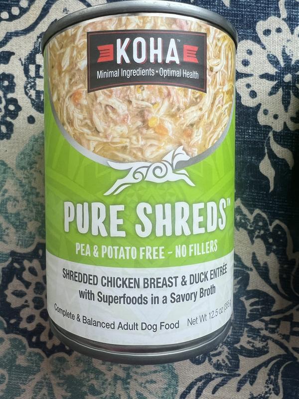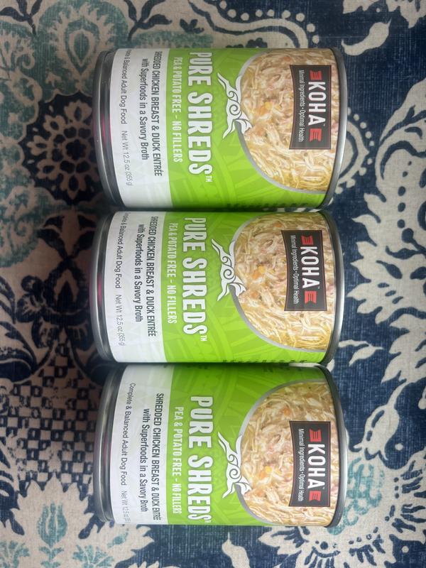 KOHA Pure Shreds Chicken & Duck Entree High Protein Wet Dog Food, 12.5-oz can, case of 12