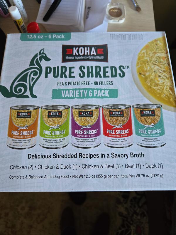 KOHA Pure Shreds Variety Pack High Protein Wet Dog Food, 12.5-oz can, case of 6