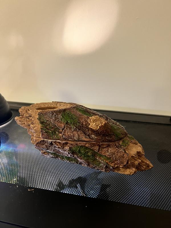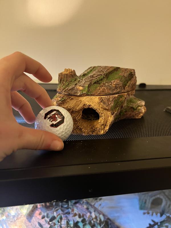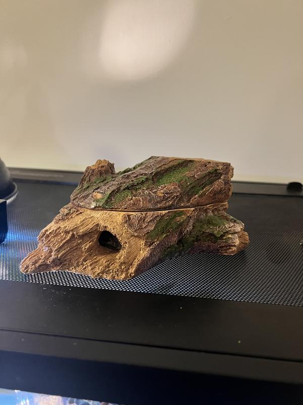 This hiding den measures 9.1 x 4.8 x 3.5 inches and is suitable for reptiles and amphibians.