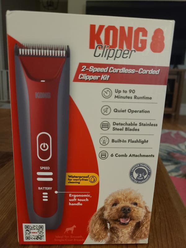 KONG 2-Speed Cordless Dog Grooming Clipper Kit, Grey/Red