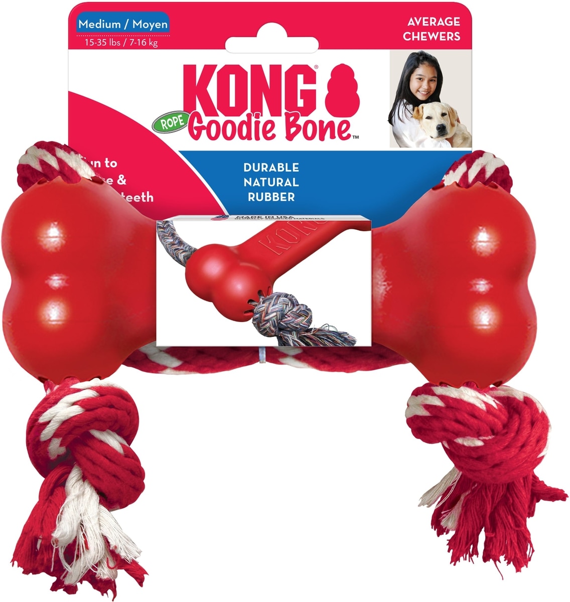 KONG Goodie Bone with Rope Dog Toy, Medium