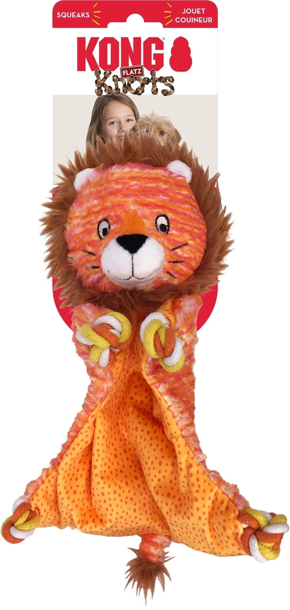 KONG Knots Flatz Lion Dog Toy, Yellow, Medium & Large