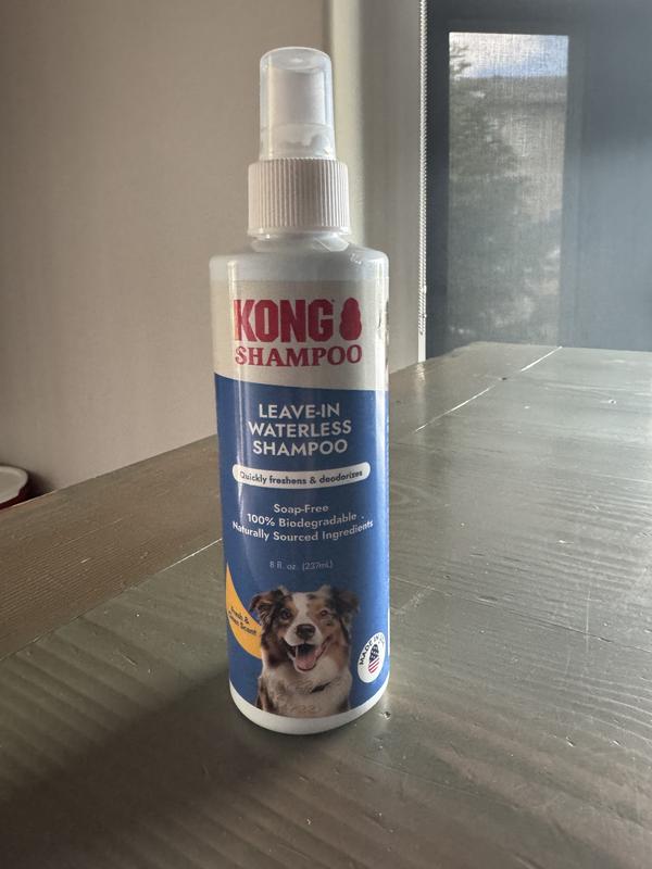 KONG Leave-In Waterless Dog Shampoo is very good, has a nice refreshing scent. My two dogs abd cats lke this. Chewy always has the best quality products for pet