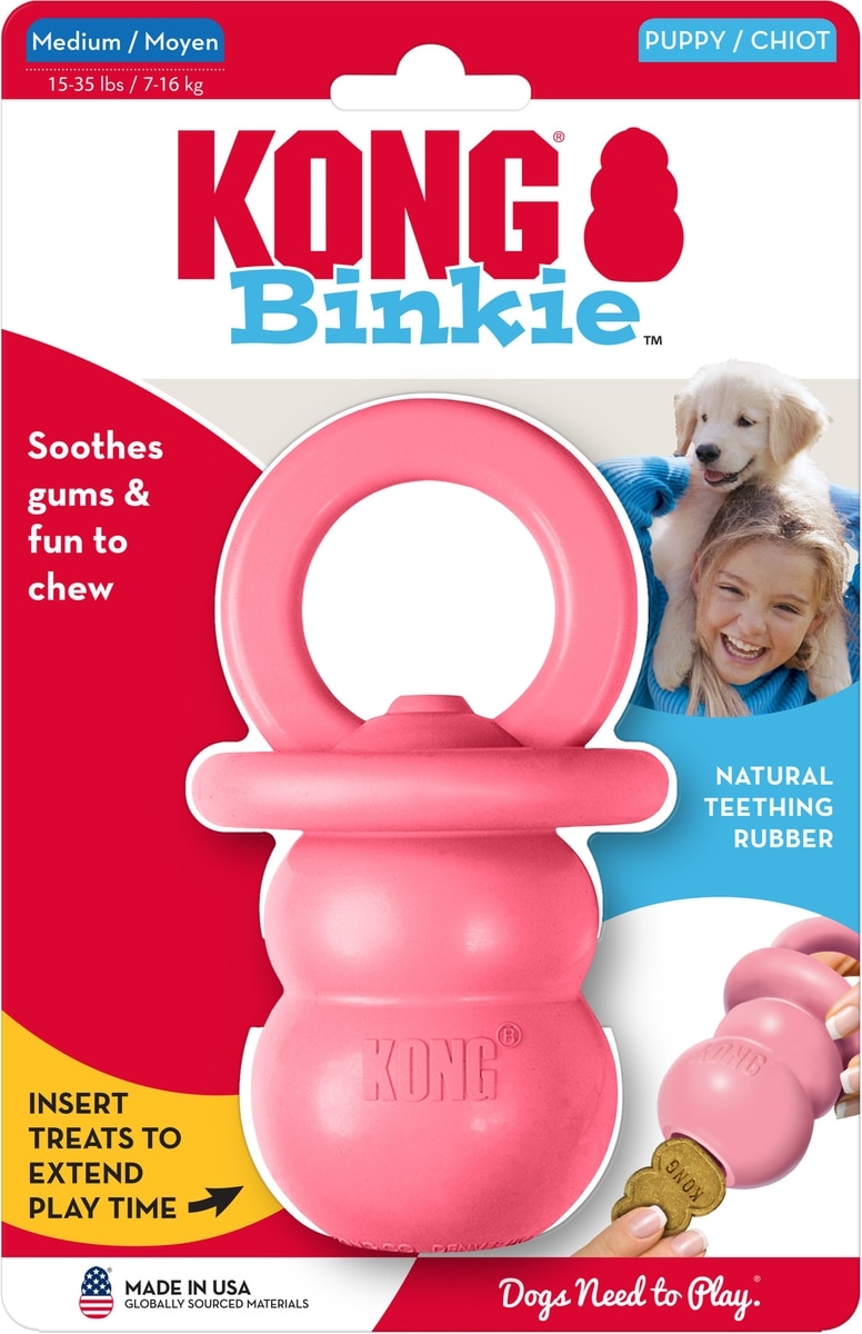 KONG Puppy Binkie Chew Dog Toy, Pink, Medium
