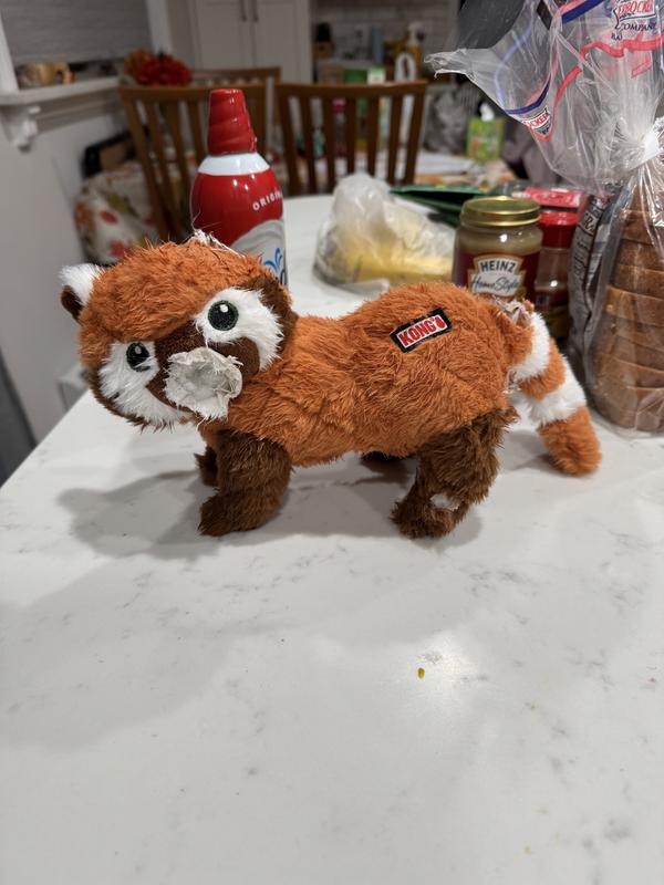 KONG Scampers Red Panda Squeaky Dog Plush Toy, Brown, Medium