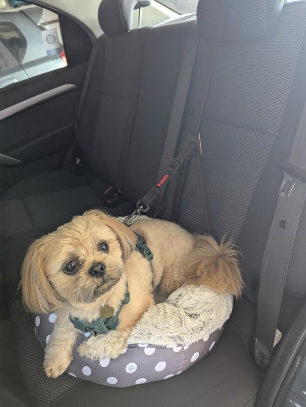 The seat belt is fully adjustable so that you can set as your requirements and the dog is able to lie down and sit.