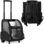 - Can be used to carry your pet in 3 different ways—you can use the telescoping handle and wheels, the strap handle or the backpack straps.