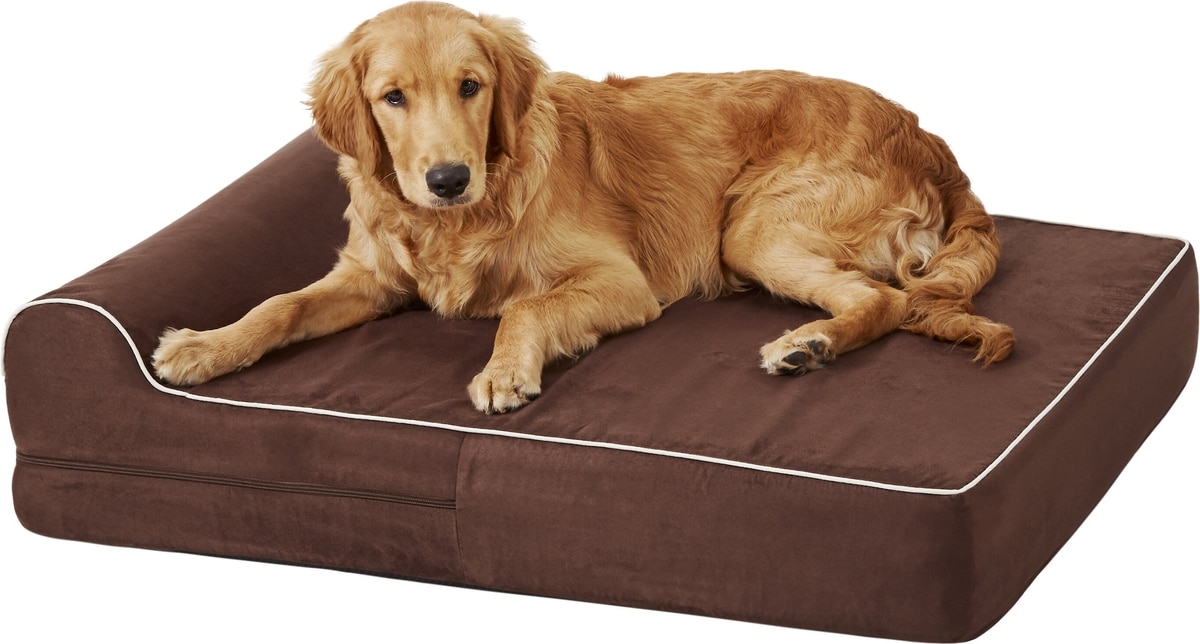 This bed is soft overall, it has a micro-suede suede lining and orthopedic-grade, hypoallergenic memory foam. It provides complete support for a more restful sleep and helps soothe joint and muscle discomfort for pups with arthritis, hip dysplasia, and other joint conditions.