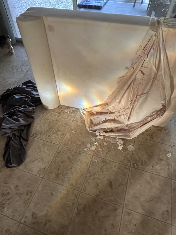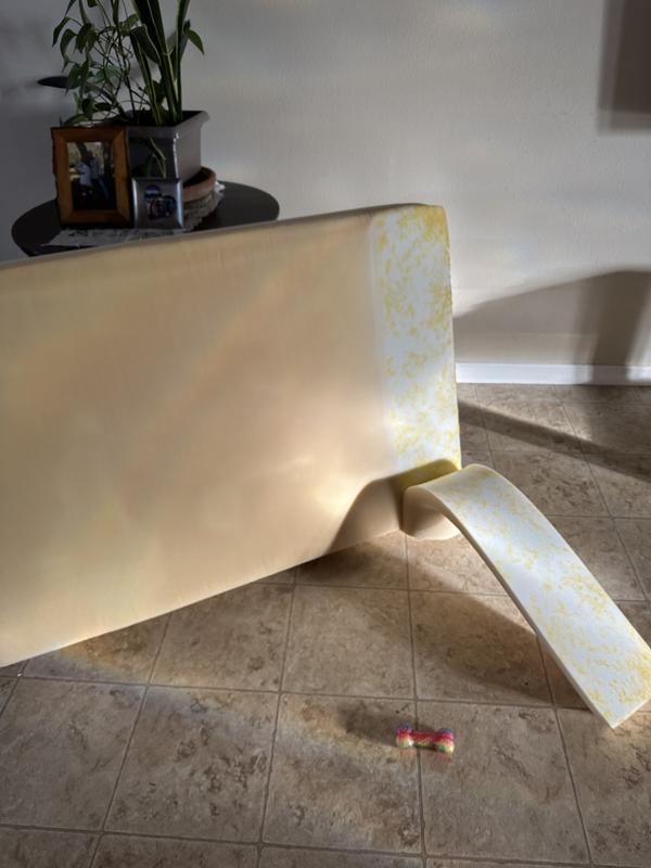 I have purchased this bed before. It was great. Lasted for years. So when it needed to be replaced i bought another one.. The bed came the same way. Allow for 72 hours to fully regain it's shape. We'll it just won't get there. It's been 72 hours and it's just stuck. I think part of the inside was melted. When I unzipped the bed it smelled weird and was sticky. It was a great bed in the past. I'm very disappointed