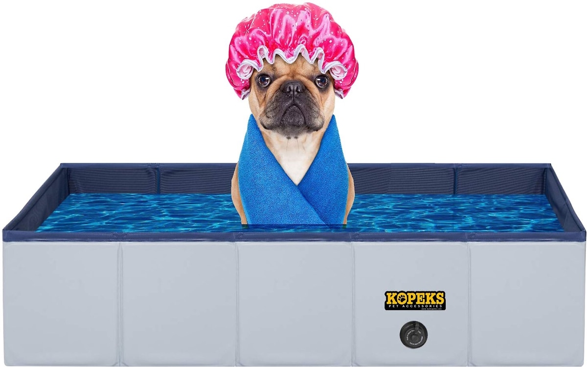 KOPEKS Outdoor Portable Rectangular Dog Swimming Pool, Gray, Medium
