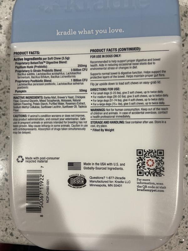 Kradle 3-in-1 Pre + Post + Probiotic Salmon Flavor Chew Supplement for Dogs, 90 count
