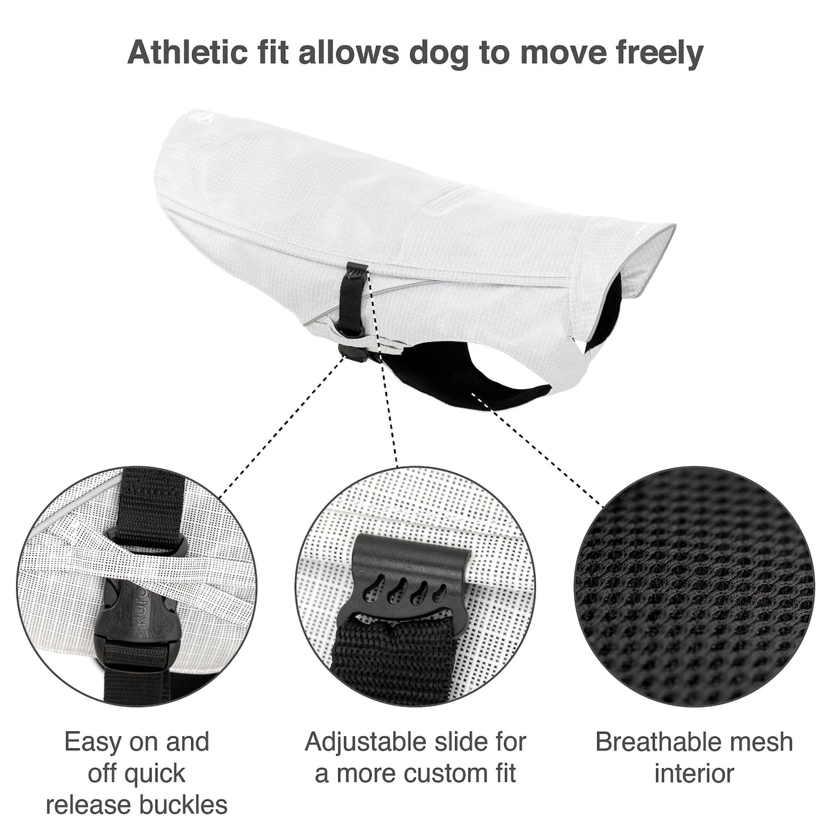 - Features a convenient leash slit on the back.