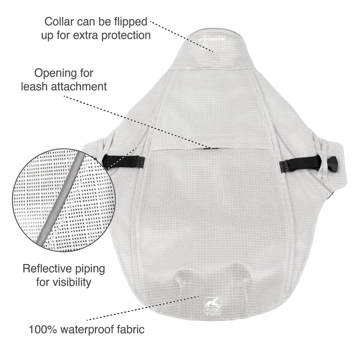 Kurgo Halifax Dog Rain Shell, Stormy White, X-Large
