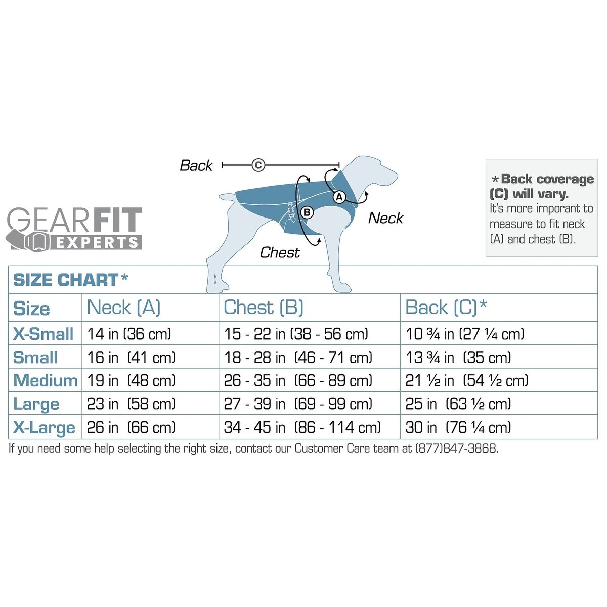 | Size | Back | Chest | Neck | Example Breeds |