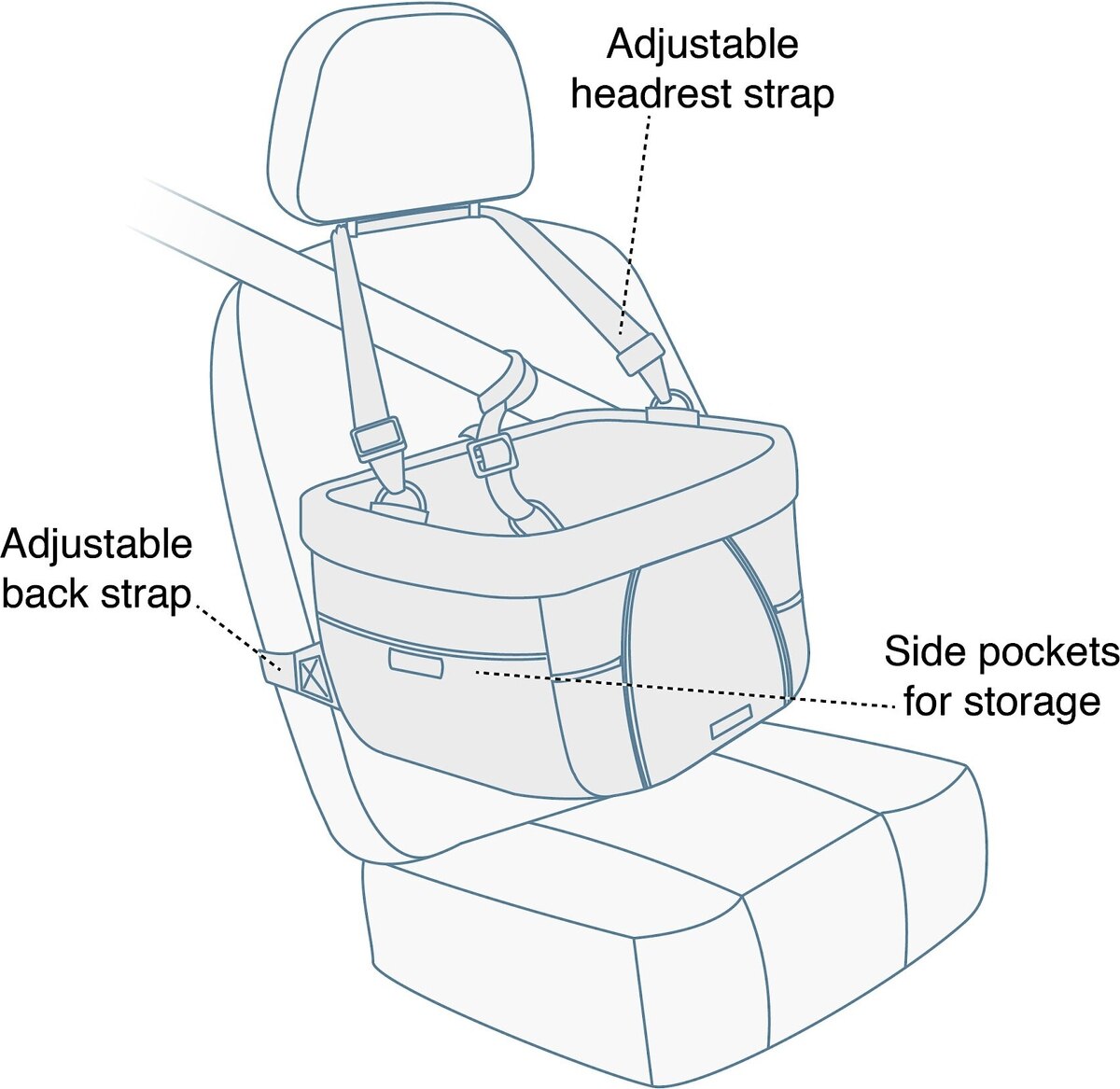• Keeps him out of your lap while driving for more safety and less distraction.
