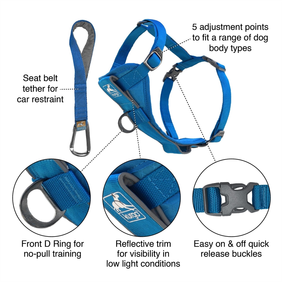 Kurgo Tru-Fit Quick Release & Seatbelt Tether Smart Dog Harness, Blue, X-Small