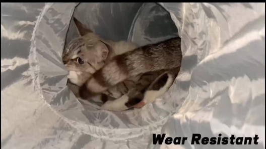 • This spacious bed includes a long tunnel for kitties and even small pups up to 22 pounds.