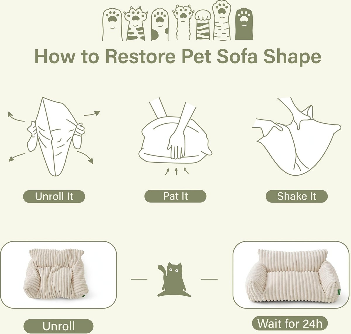 Kylinsure Corduroy Fleece Dog & Cat Sofa Bed with Removable Cover, Cream, Small